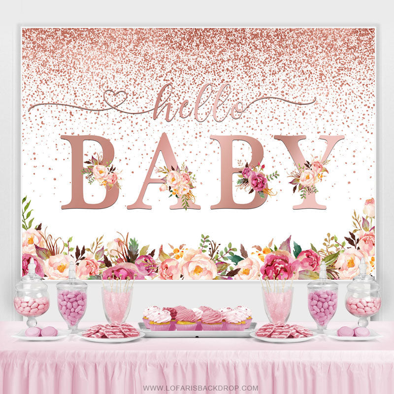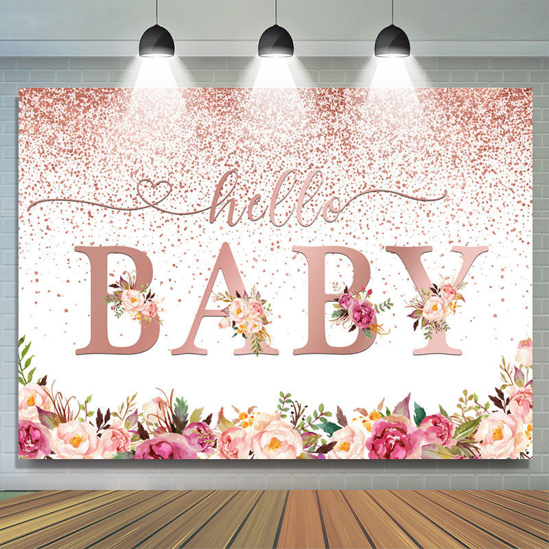 Rose Golden With Flowers Lovely Baby Shower Backdrop