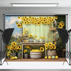Sunflower Blue Sky Wooden Board Lemon Photo Backdrop