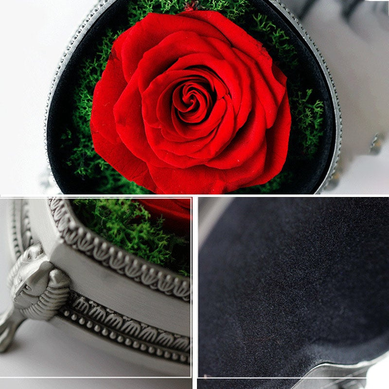 Perfect Gift: Rose is well preserved in a heart shaped classic antique gold metal case. Outside there is another retro design outer gift box. Romantic gift for her.