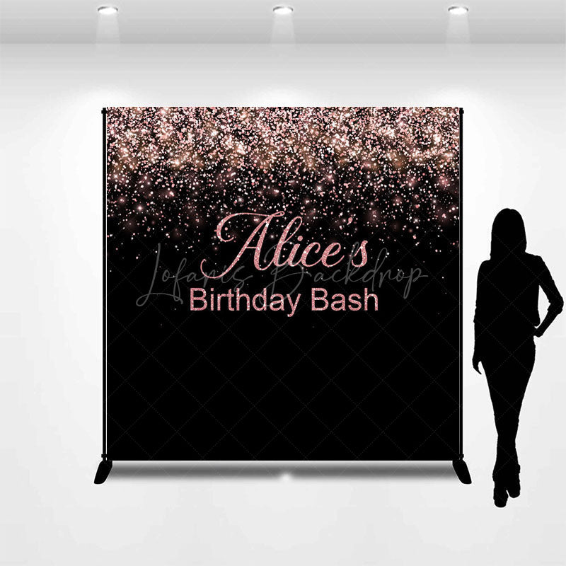 Lofaris Black Rose Gold Glitter Custom Name Birthday Backdrop