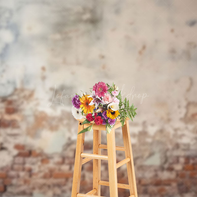 Lofaris Vintage Red Brick Wall Faded White Paint Backdrop