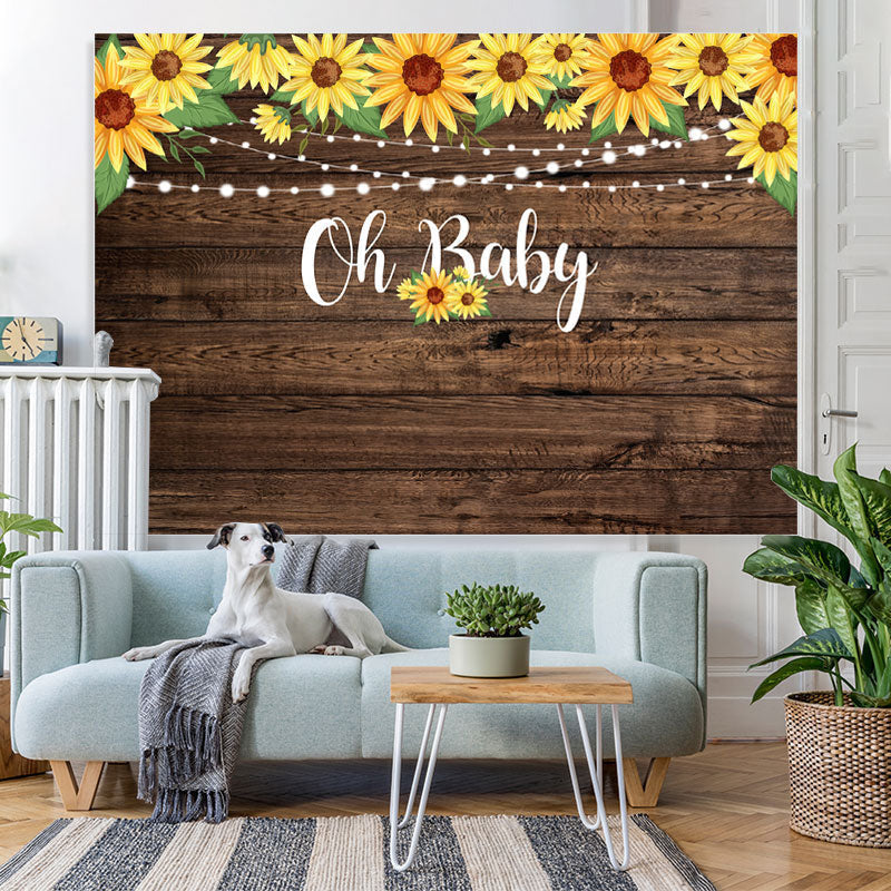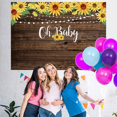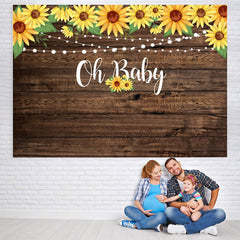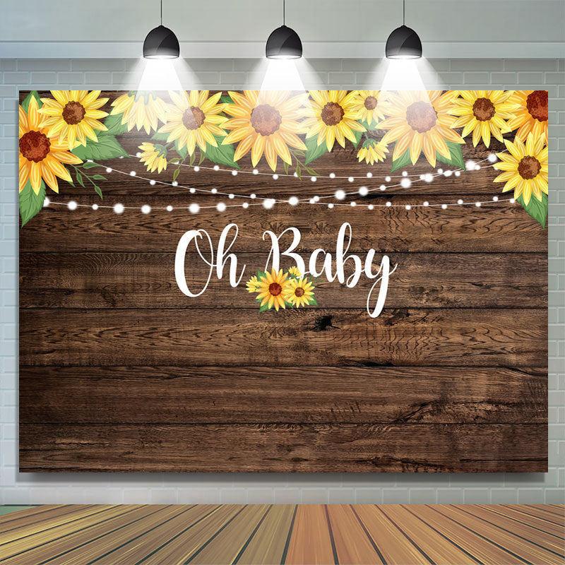 Oh Baby Wood Sunflower Lights Gender Reveal Backdrop
