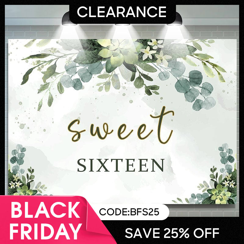 (Ship In 24HR) Sweet Sixteen Green Leaves 16th Birthday Backdrop
