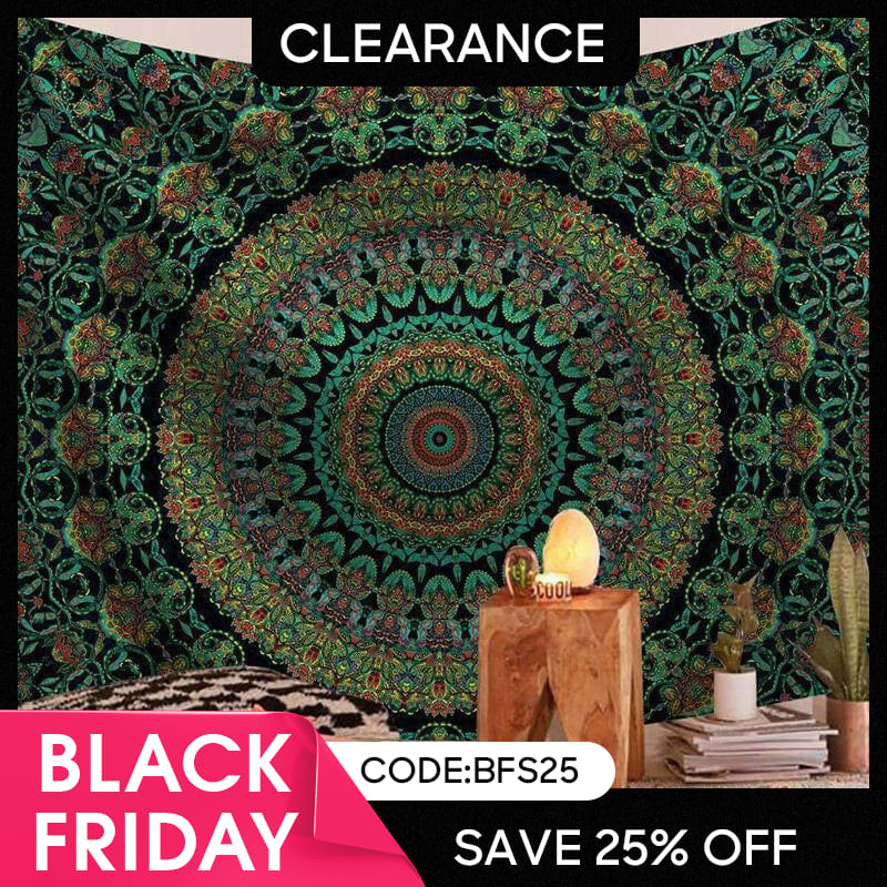 (Ship In 24HR) Dark Green Mandala Trippy Room Decoration Wall Tapestry