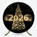 Lofaris Happy New Year 2026 Round Backdrop with Golden Christmas Tree, Fireworks and Confetti, Elegant NYE Party Decor