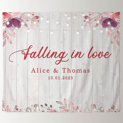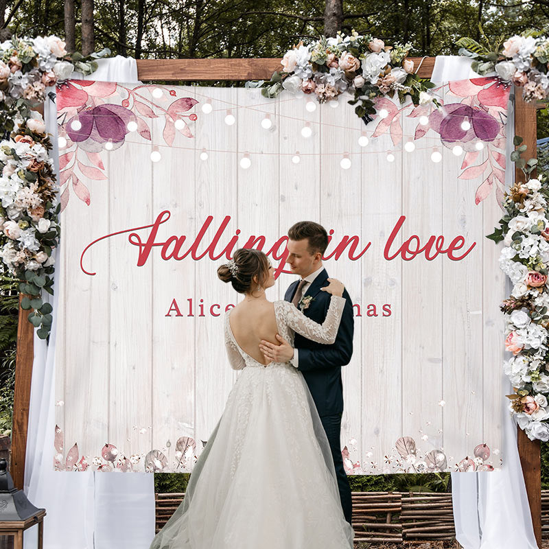 Falling in Love Wood Light and Floral Wedding Backdrop