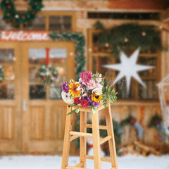 Lofaris Welcome Wooden Door Garland Xmas Photo Backdrop