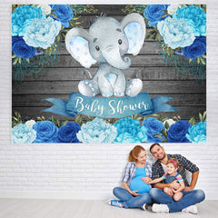 Wooden Blue Floral Elephant Baby Shower Backdrop