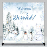 Lofaris Snowy Forest Animal Custom Name Welcome Baby Backdrop