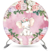 Pink Floral Cute Elephant Round Baby Shower Backdrop