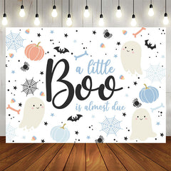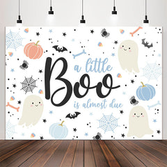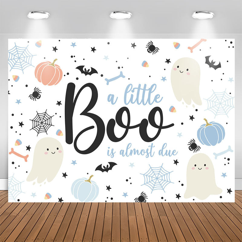 Blue A Little Boo Is Almost Due Baby Shower Backdrop