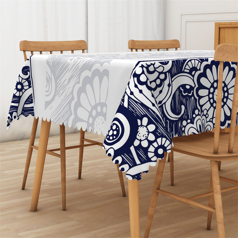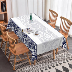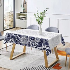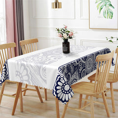 Blurred Blue White Flower Pattern Rectangle Tablecloth