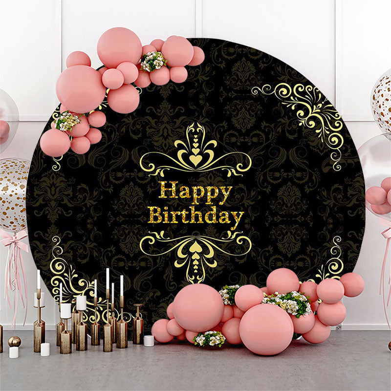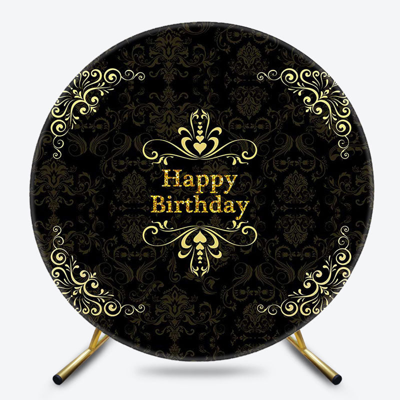 Circle Black Yellow Flower Happy Birthday Backdrop