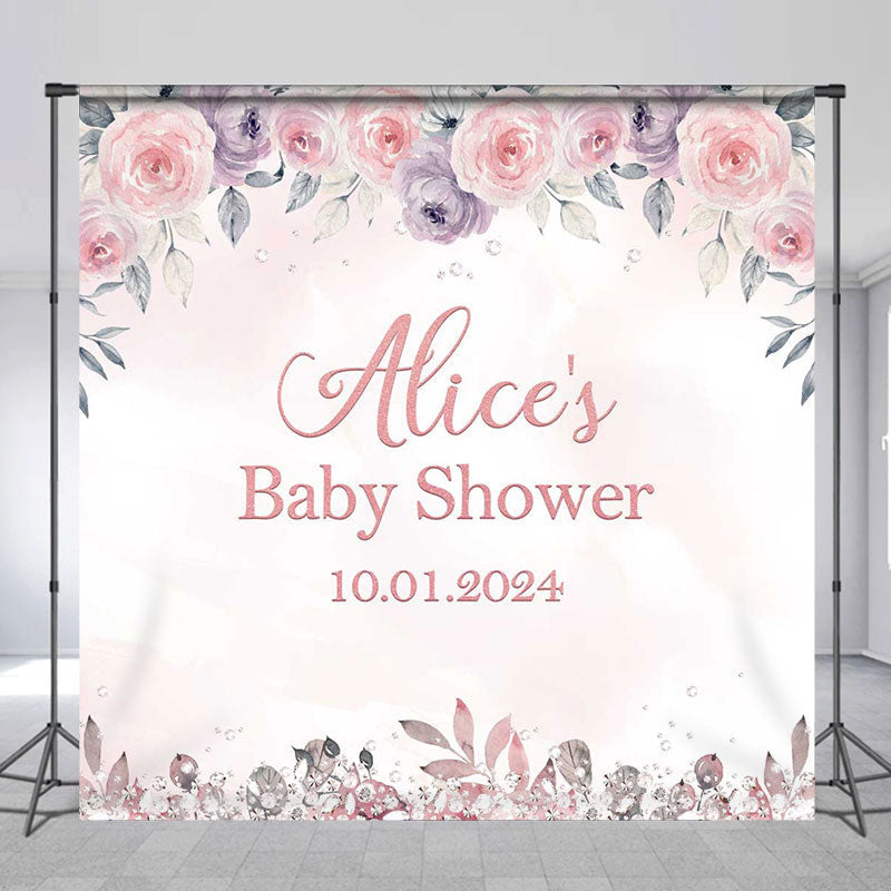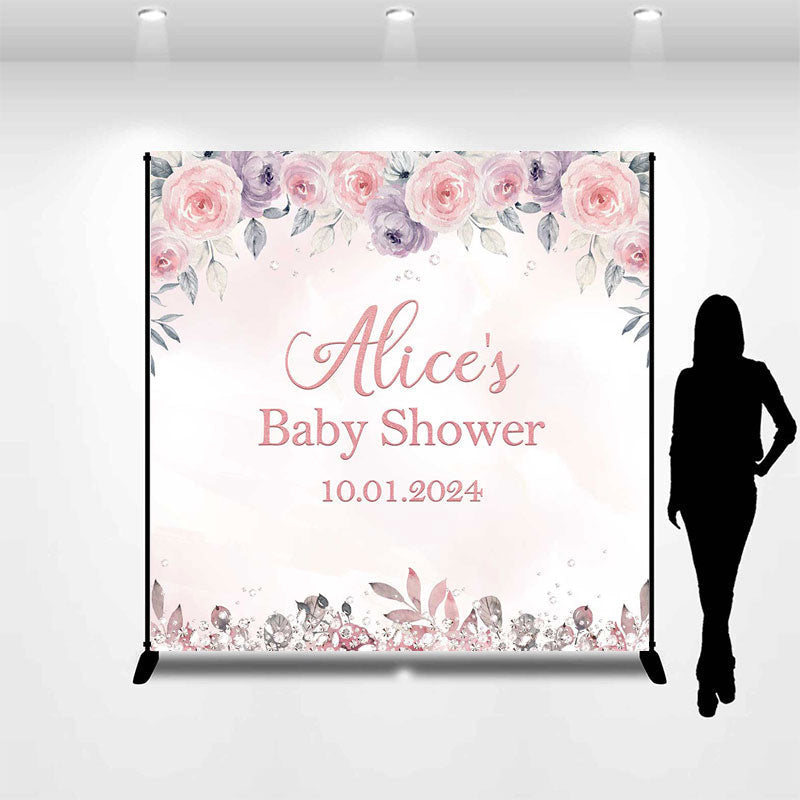 Flower Diamond Custom Pink Baby Shower Backdrop