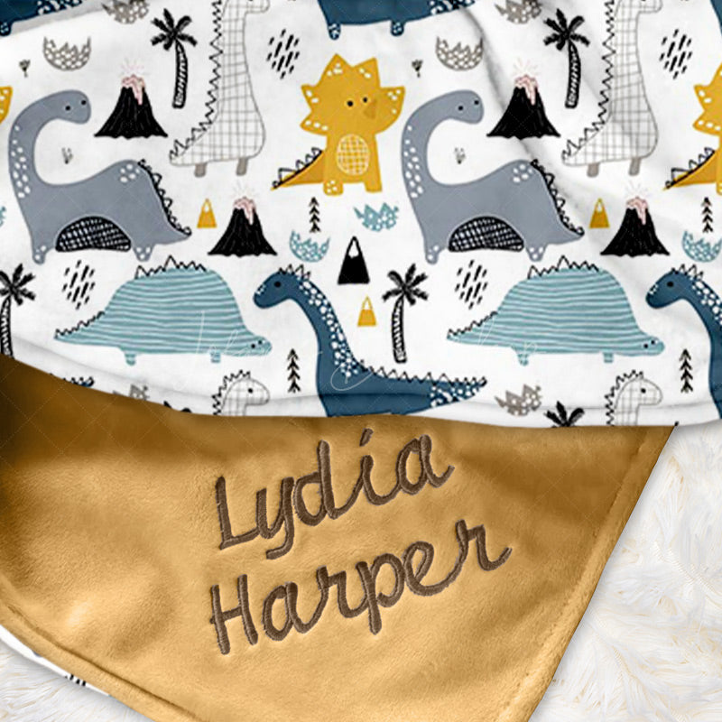All of our blankets are custom made with different color options and include personalized embroidery. We embroider one side of the blanket before stitching the two layers together, ensuring that the back of the embroidery remains hidden and doesn't show on the other side. This unique technique distinguishes our blankets from many others, where the embroidery penetrates both layers! This will be the perfect baby shower gift, keepsake for a newborn baby, and an every day staple for your little ones comfort!