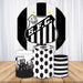 Lofaris Santos FC Inspired Round Backdrop Kit, Brazilian Football Club Logo, Black and White Soccer Party Decor