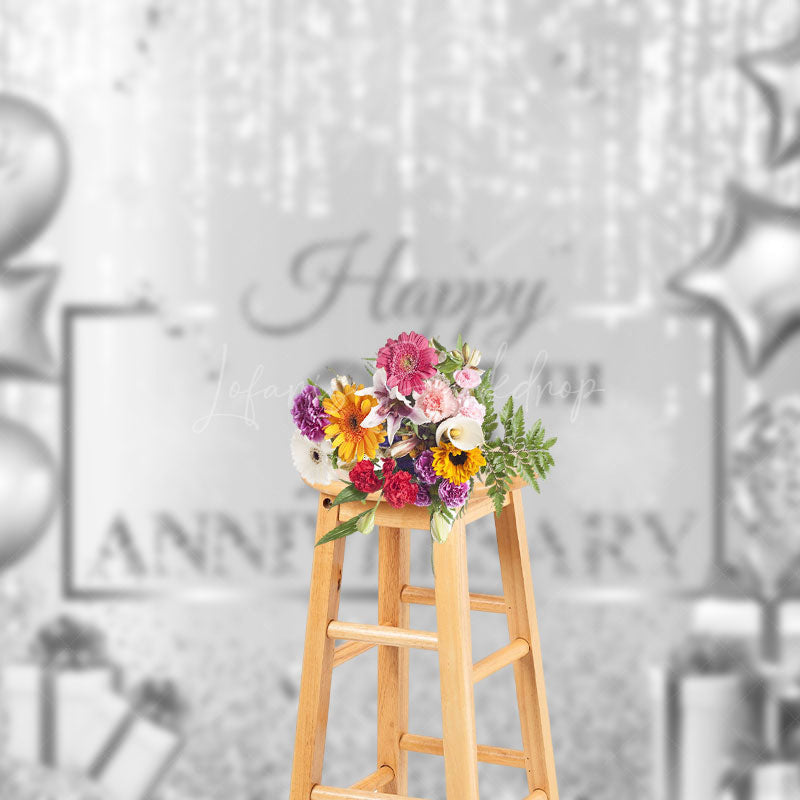 Lofaris Silver Glitter Gift Balloon 25Th Anniversary Backdrop