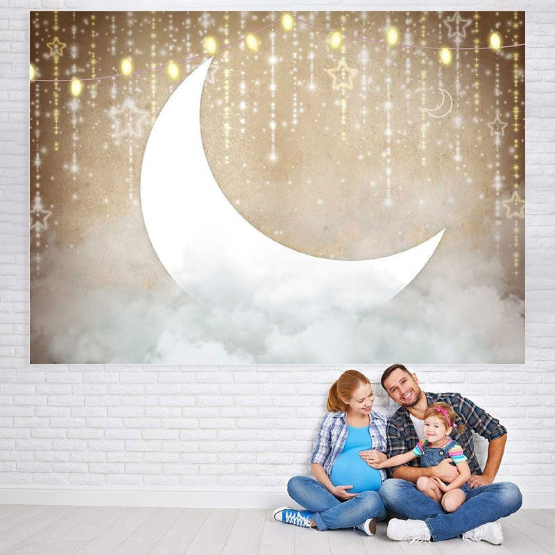 Star Moon Clouds Glitter Sand Baby Shower Backdrop