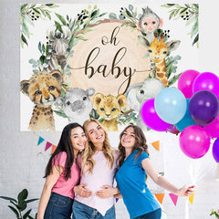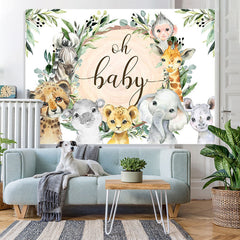Jungle Animals Green Wreath Baby Shower Backdrop