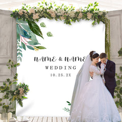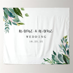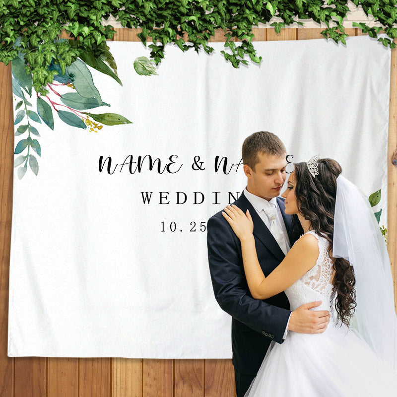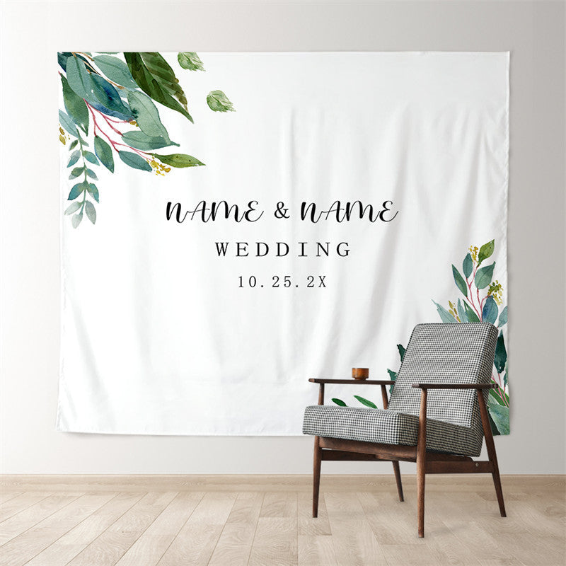 Personalized Boho Simple Green Leaf Wedding Backdrop Banner