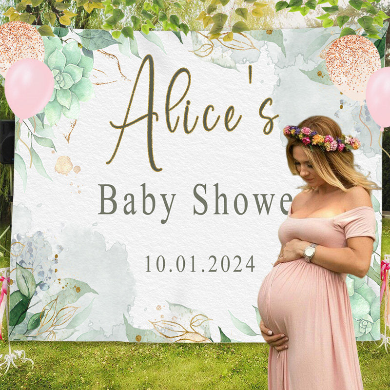 Personalized Green Flower Leaves Baby Shower Backdrop