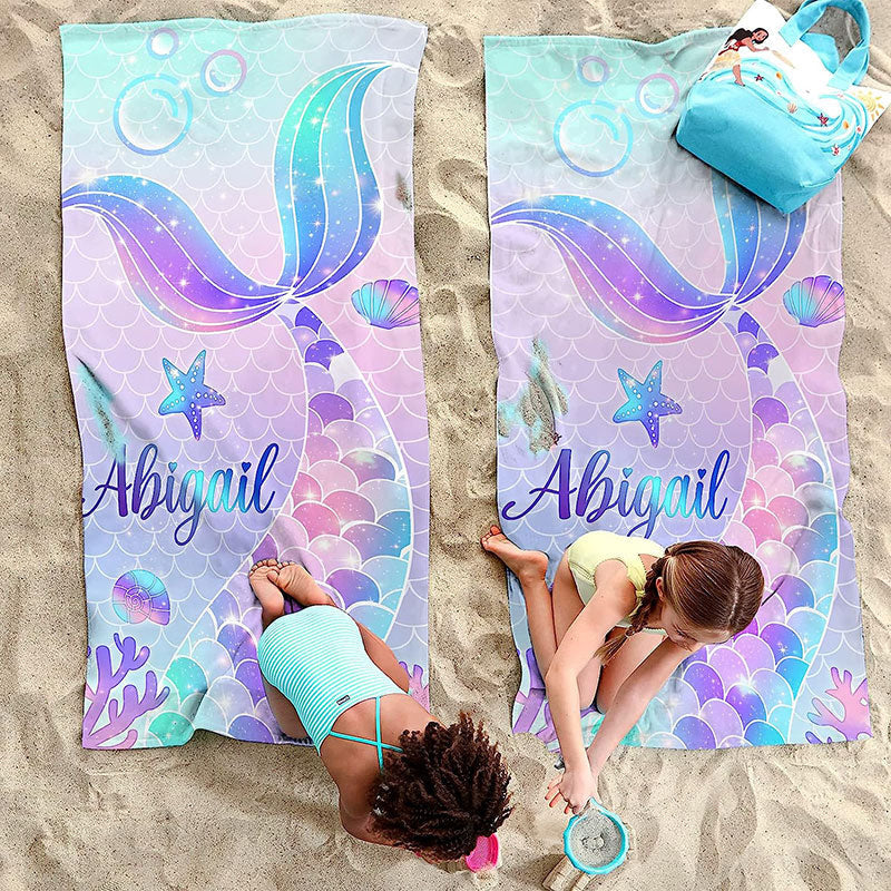 Personalized Mermaid Tail Name Beach Towel For Girl