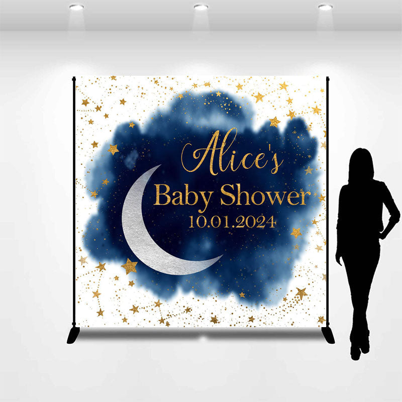 Personalized Stars Blue Spot Baby Shower Backdrop