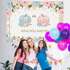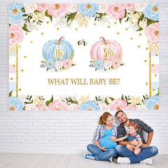 Pink and Blue Pimpkins Floral Baby Shower Backdrop