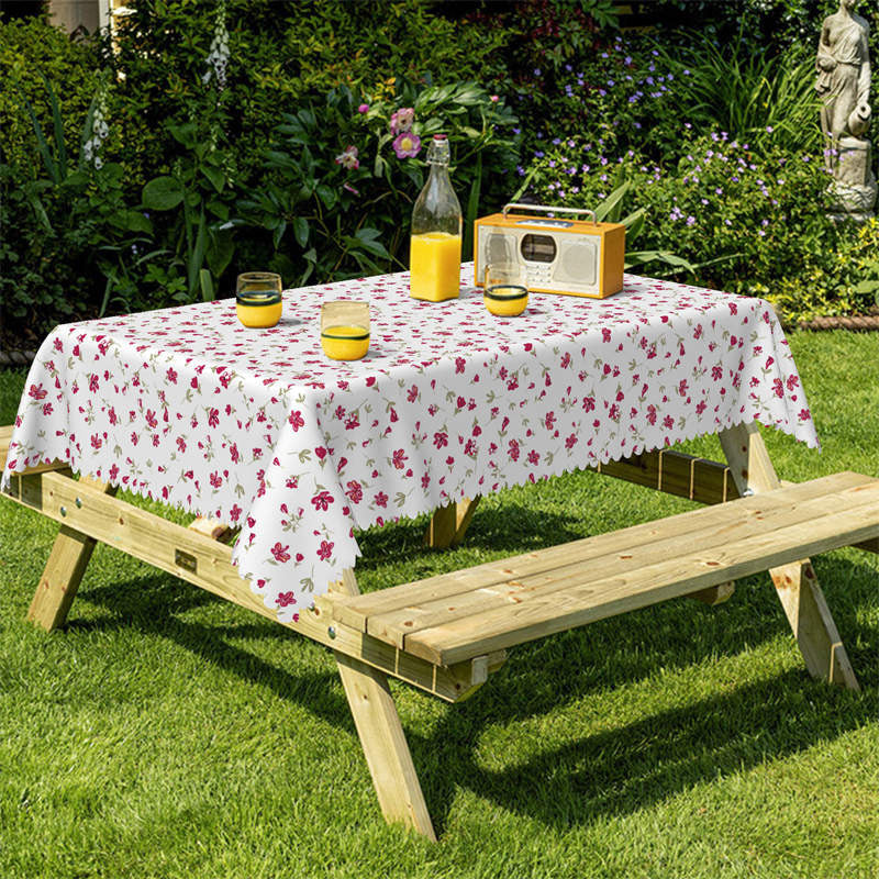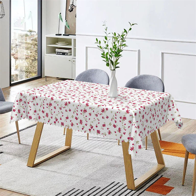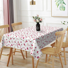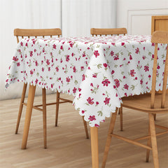Red Little Flower White Rectangle Tablecloth for Cafe
