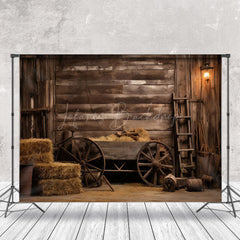 Retro Brown Wooden Cart Interior Barn Photo Backdrop