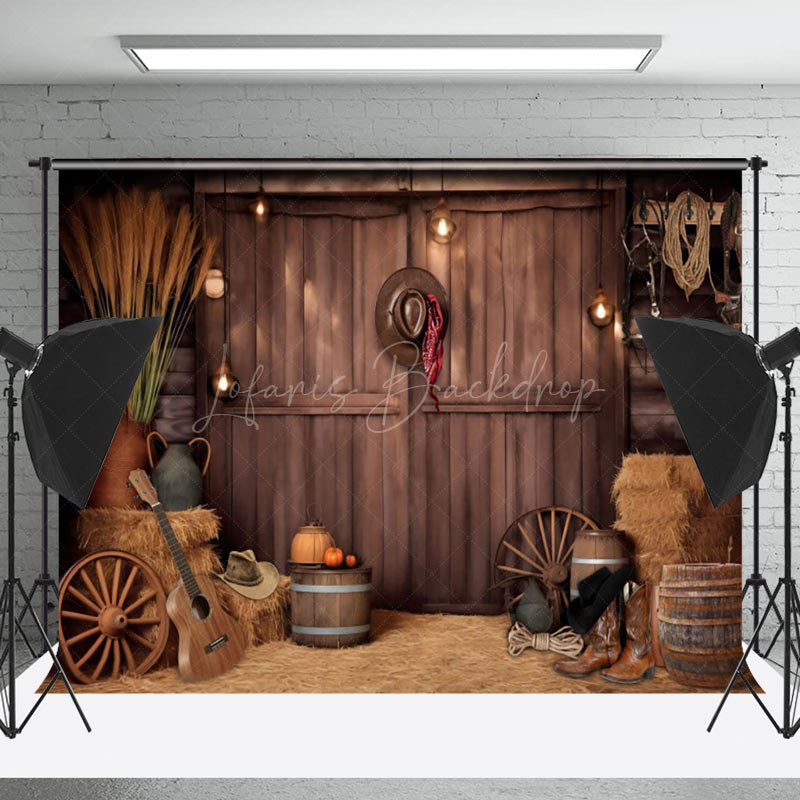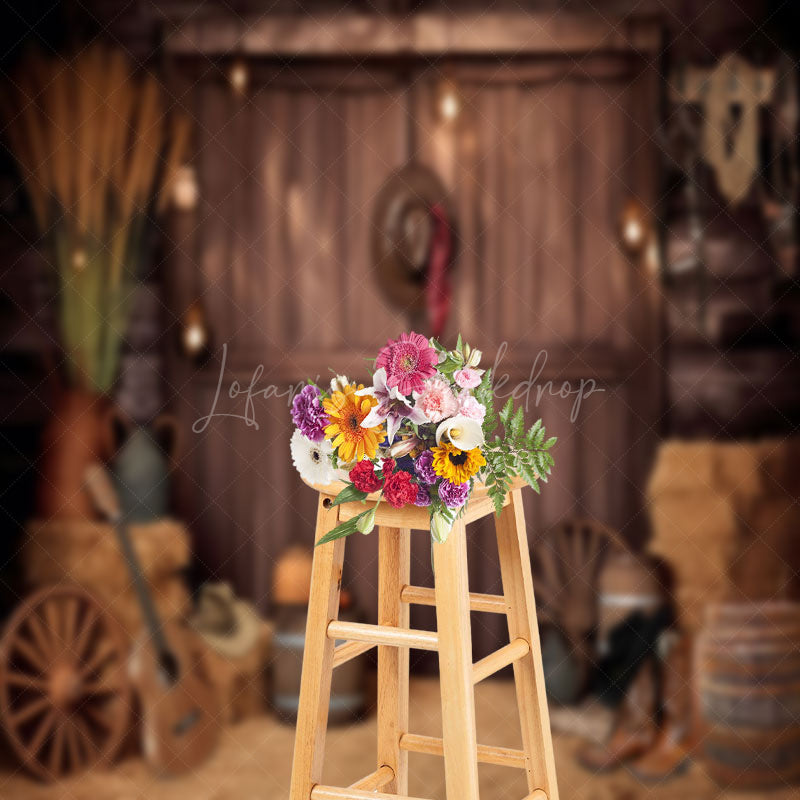 Retro Brown Wooden Door Cowboy Backdrop For Photo