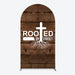 Lofaris Rooted In Christ Religious Holiday Rectangle Backdrop, Dark Wood Texture Cross Party Cover