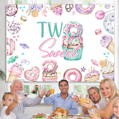 Purple Pink Sweet Donuts Happy 2nd Birthday Backdrop