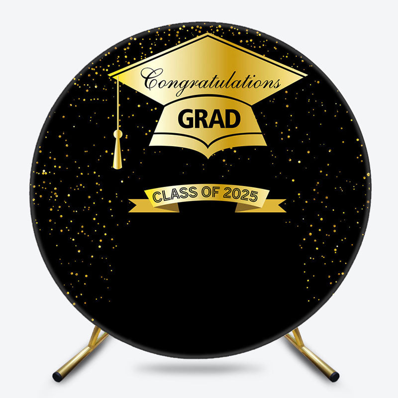2025 Golden Hat And Black Round Graduation Backdrop