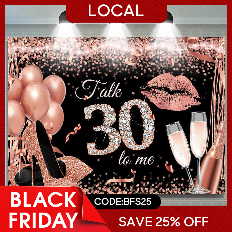 (7 Day Delivery) Lofaris Rose Gold Glitter Talk 30 To Me Birthday Backdrop