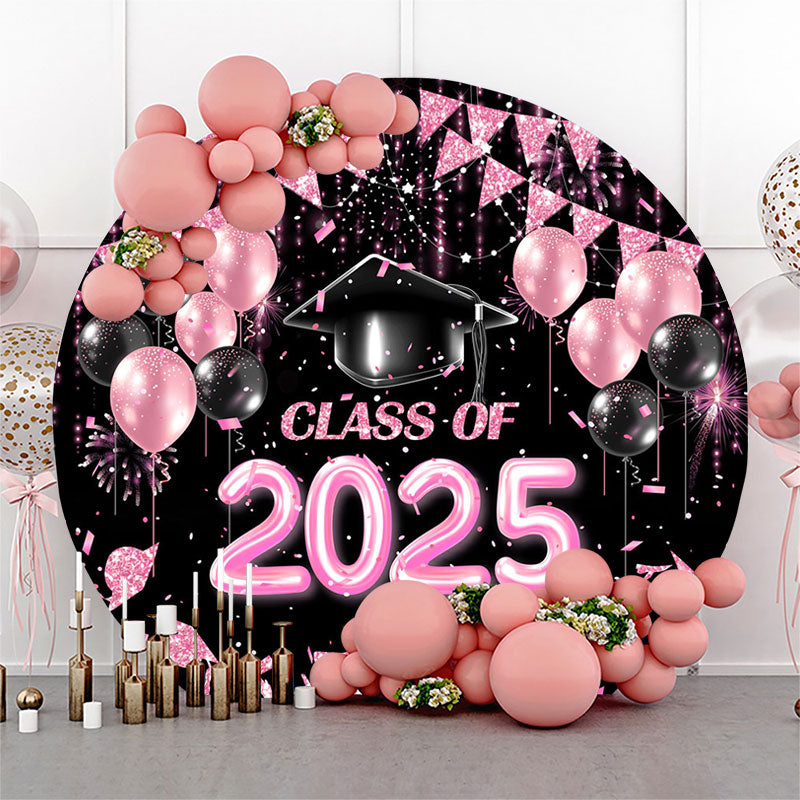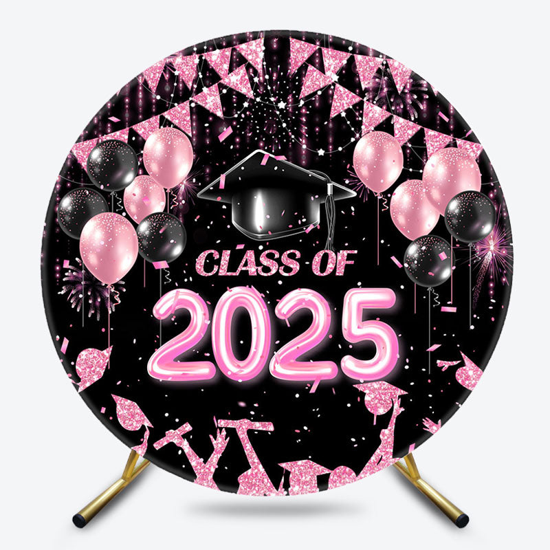 Black Pink Balloon Class Of 2025 Round Grad Backdrop