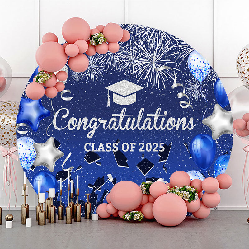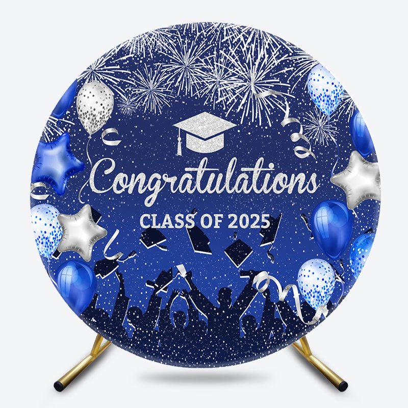 Blue Balloon Congrats Class 2025 Grad Round Backdrop