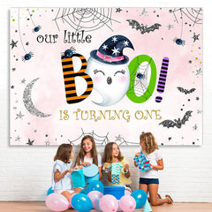 Boo! Halloween themed Pink Happy 1st Birthday Backdrop
