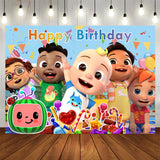 Cartoon Baby Family Happy Birthday Backdrop For Party