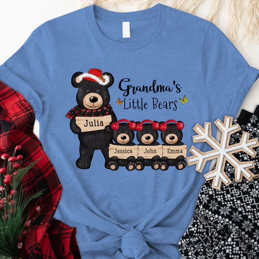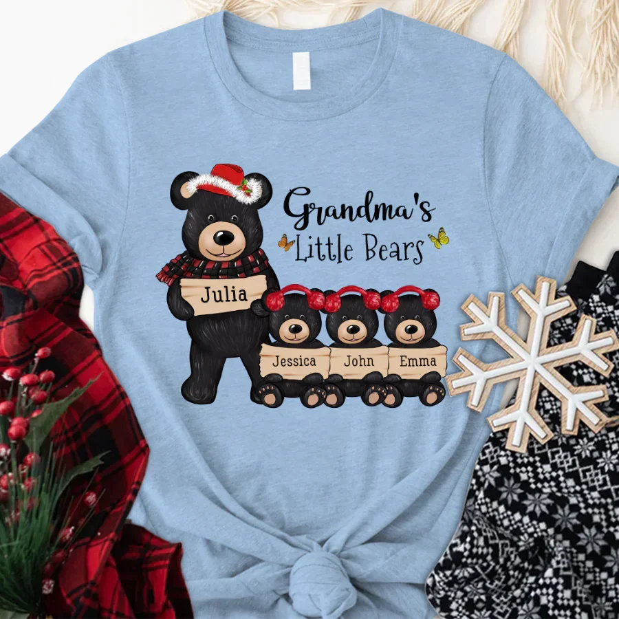 Custom Little Bears With Grandkids Christmas T-Shirt