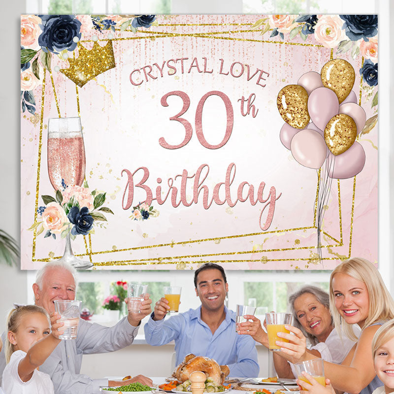 Floral And Glitter Crystal Love 30Th Birthday Backdrop