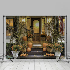 Flowers Pumpkin Plant Door Wood Steps Fall Festive Backdrop