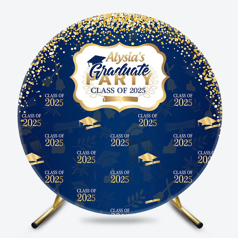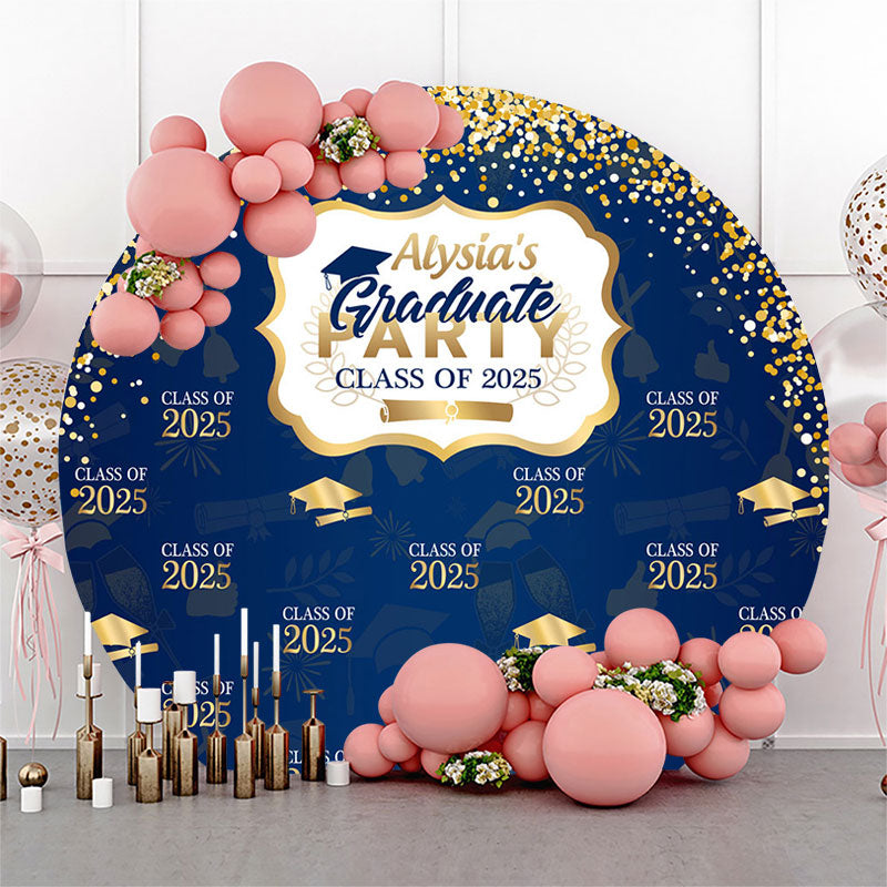 Gold Glitter Navy Blue Round Graduation Party Backdrop