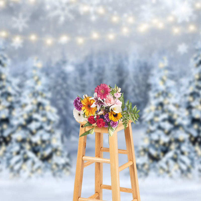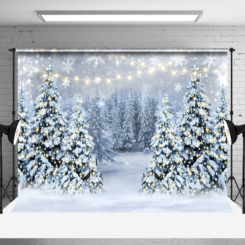 Heavy Snowy Pine Forest Bokeh Photo Winter Backdrop