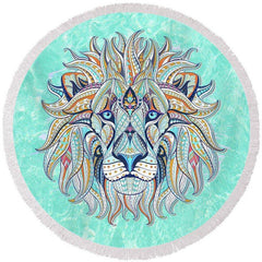 Lazy Lion Head Pattern Aqua Blue Circle Beach Towel
