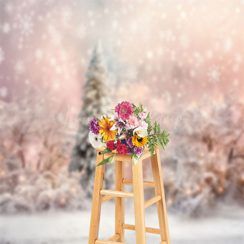 Lofaris Snowflake Pine Tree Pink Winter Photography Backdrop