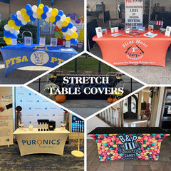 These table covers are made from extra-thick, high-density stretch fabric that is fully opaque, ultra-durable, and long-lasting. Unlike thinner alternatives, they are stain-resistant, wrinkle-resistant, and flame-retardant, ensuring a sleek, professional look for any indoor or outdoor event.