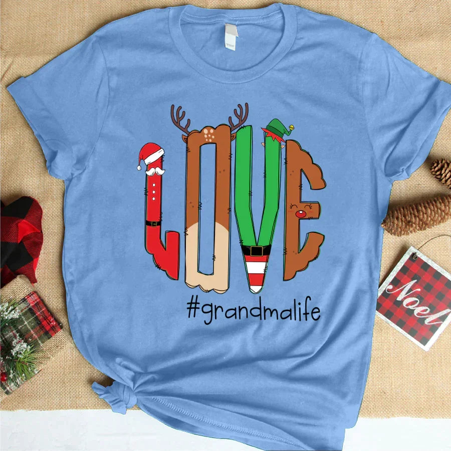 Love Grandma Life Antler Christmas Gift T-Shirt