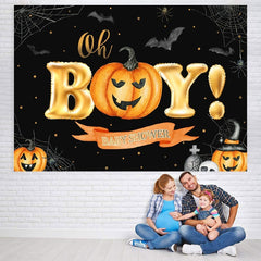 Oh Boy Pumpkin Black Halloween Baby Shower Backdrop