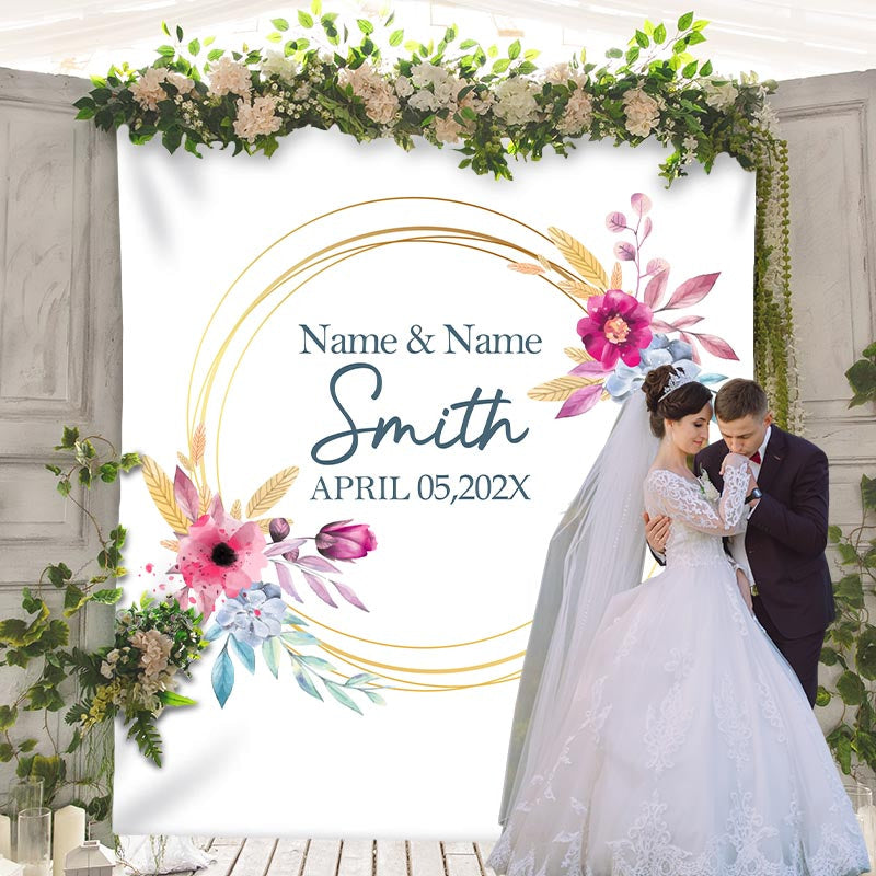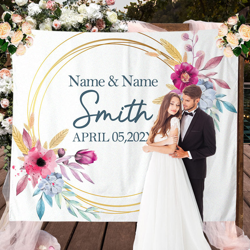 Personalized Watercolor Floral Wedding Backdrop Banner